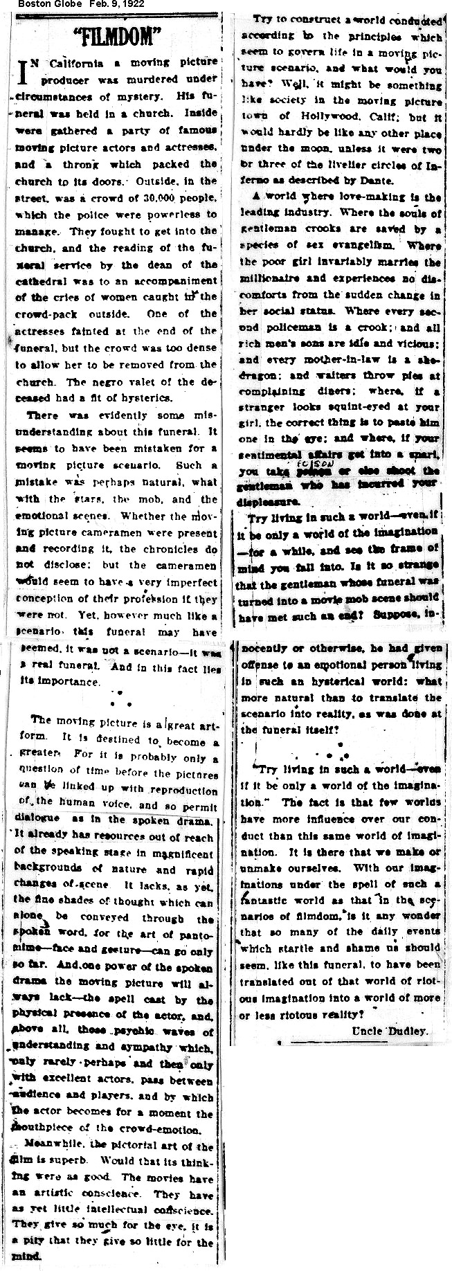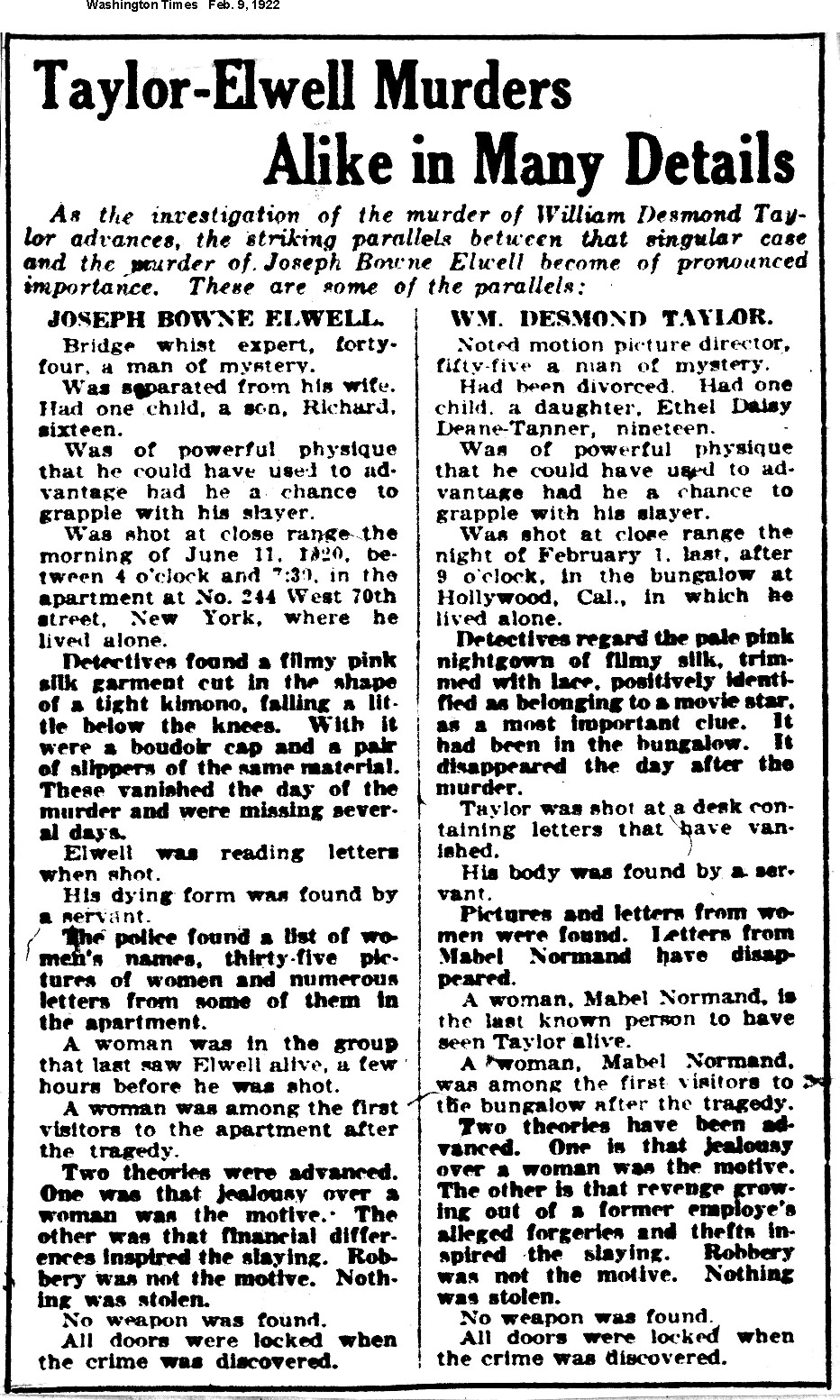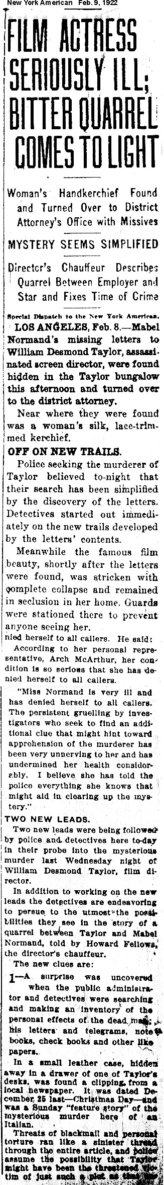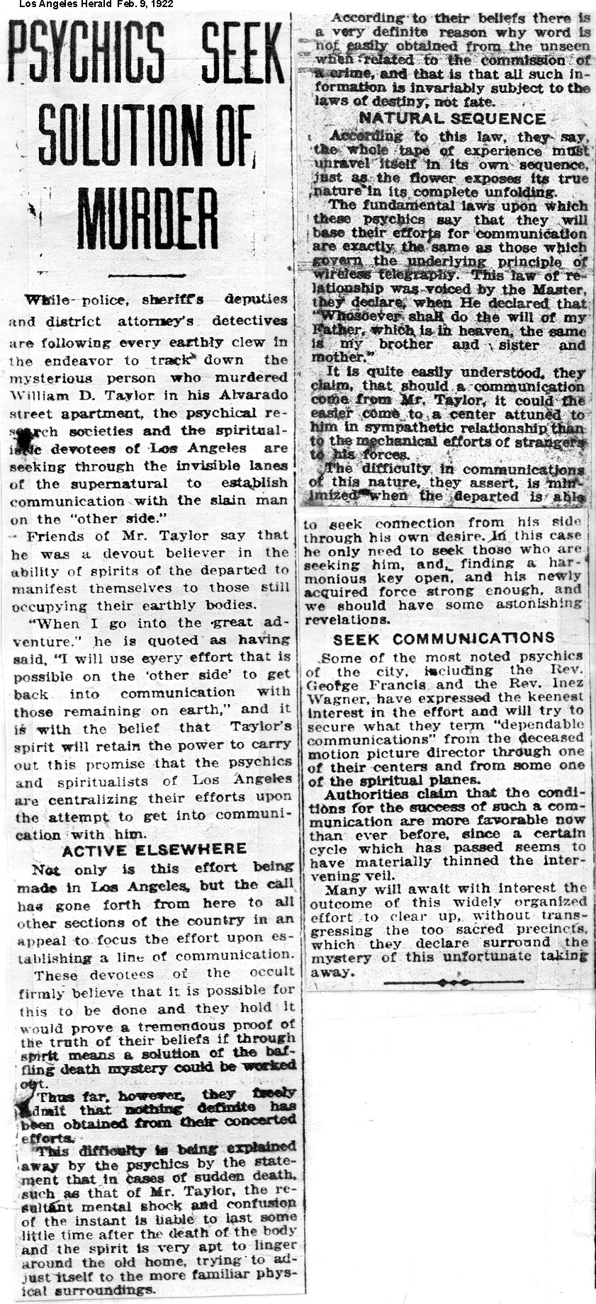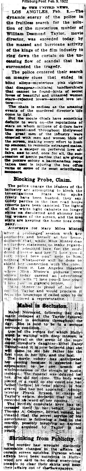 Note: The early press reports contain many factual errors. Some clippings are incomplete, either because the missing portion was duplicated elsewhere or was considered not worth the cost of a another photocopy.