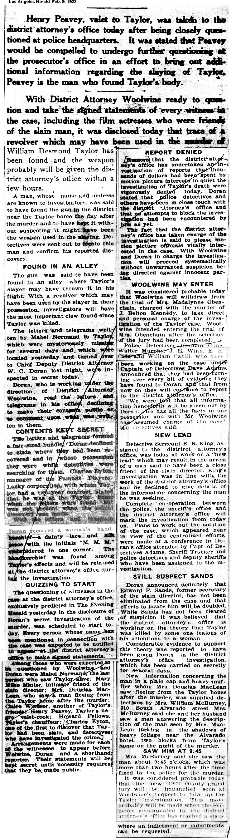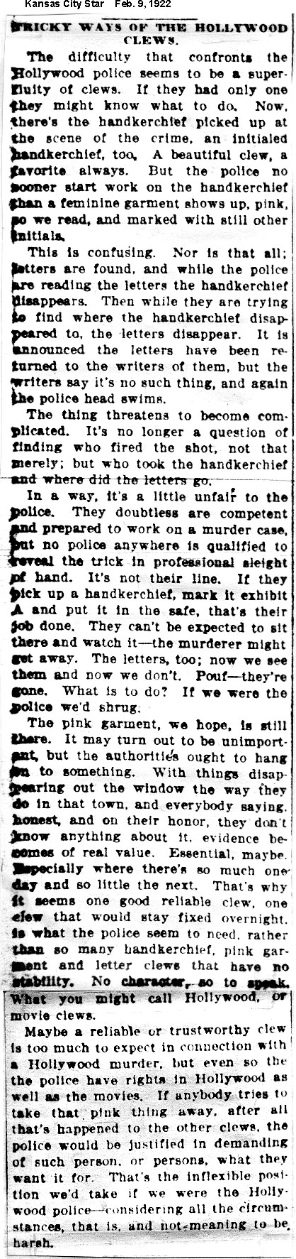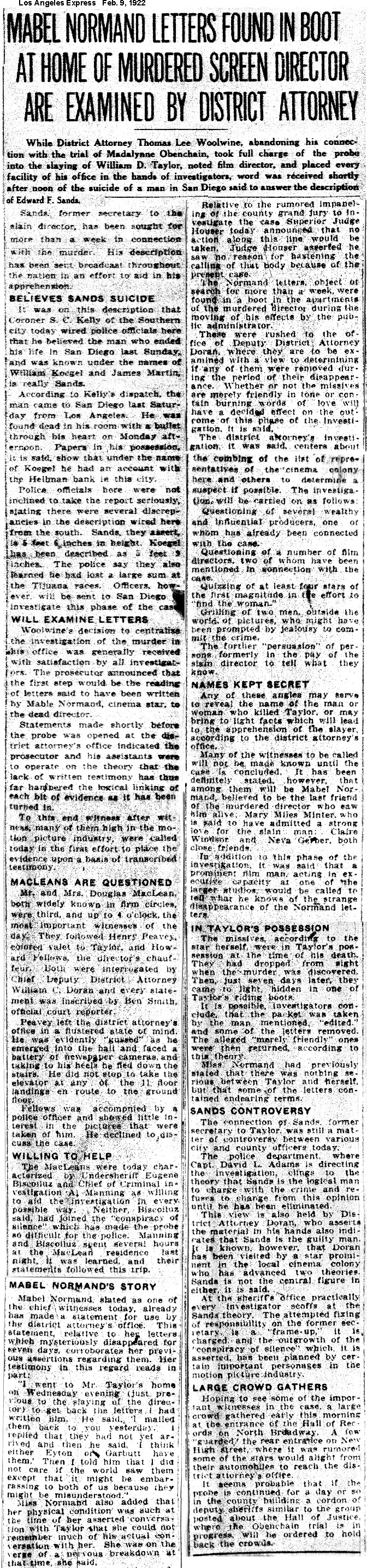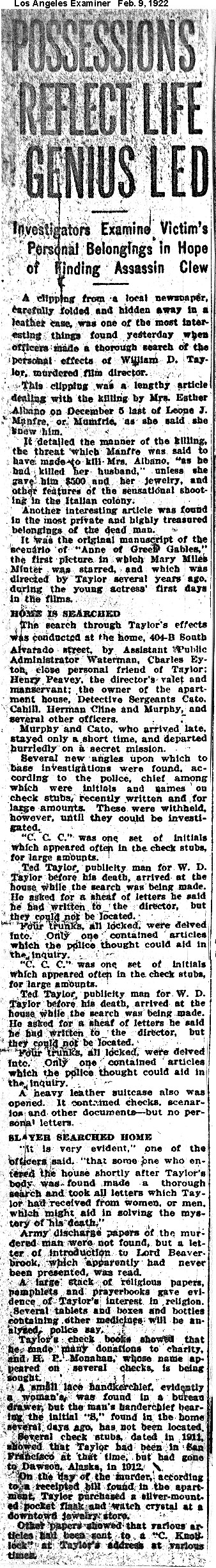 Some clippings contain ethnic characterizations which are today considered offensive and unacceptable. They are included for historic purposes. Los Angeles Examiner
