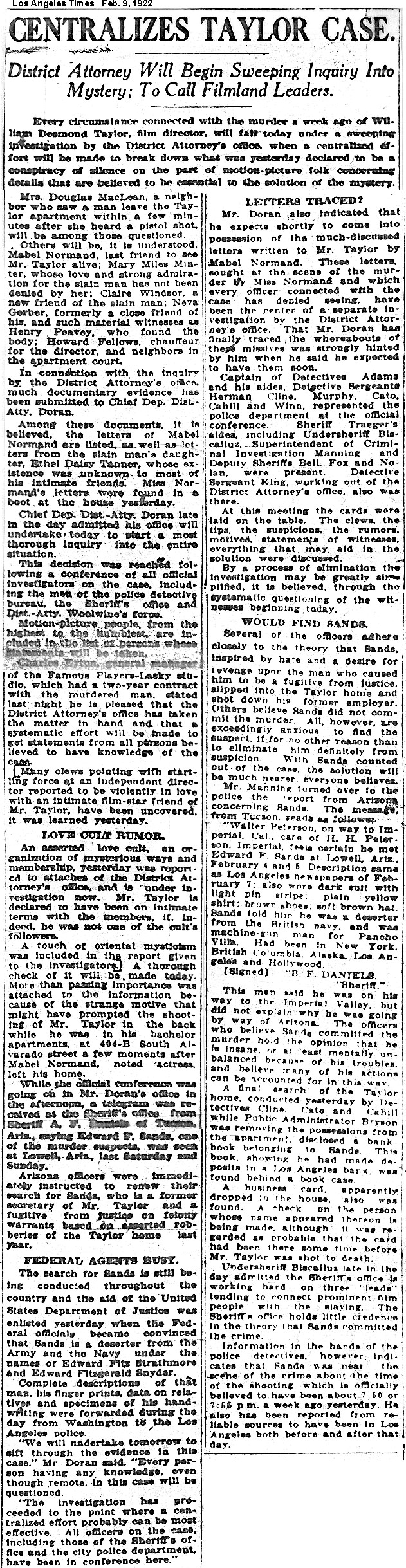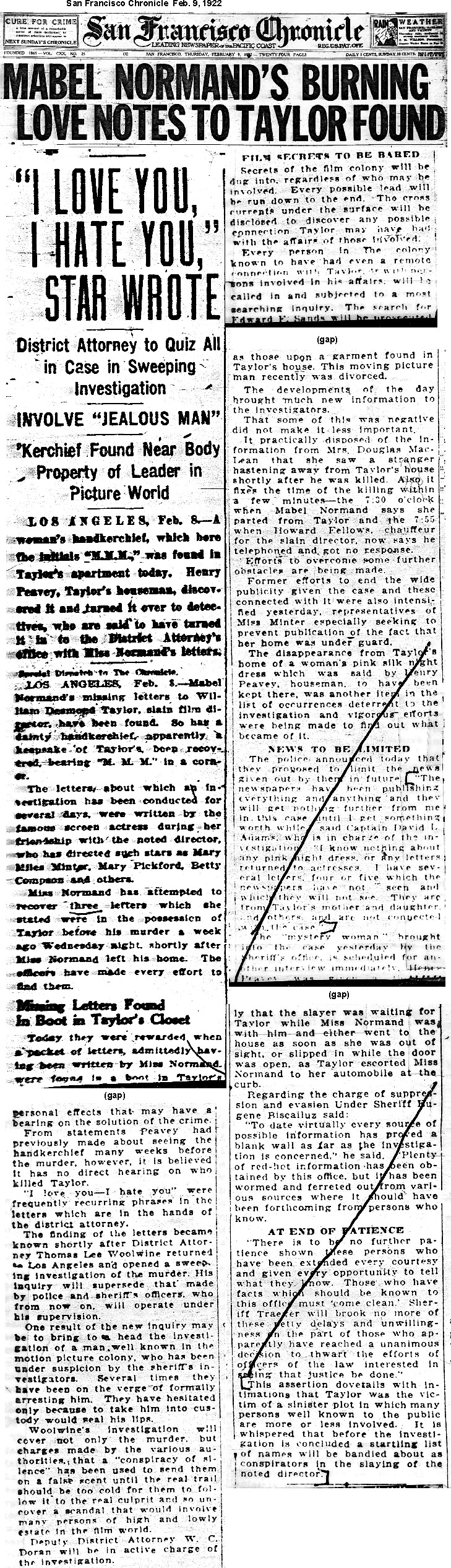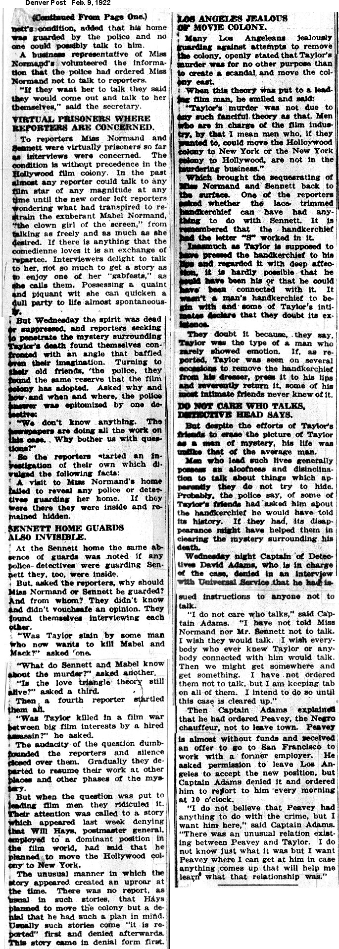 Some clippings contain ethnic characterizations which are today considered offensive and unacceptable. They are included for historic purposes. Los Angeles Examiner