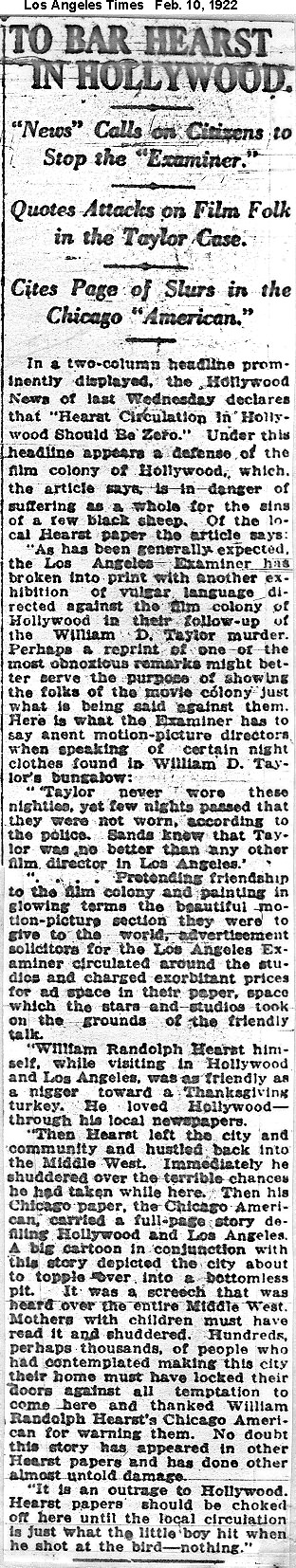 Some clippings contain ethnic characterizations which are today considered offensive and unacceptable. They are included for historic purposes. Los Angeles Examiner