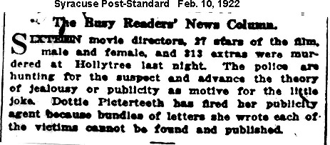 Note: The early press reports contain many factual errors. Some clippings are incomplete, either because the missing portion was duplicated elsewhere or was considered not worth the cost of a another photocopy.
