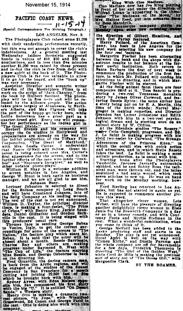 Silent Era Home Page  >  Taylorology  >  Press Archive  >  New York Morning Telegraph 1914-1922  >  1914