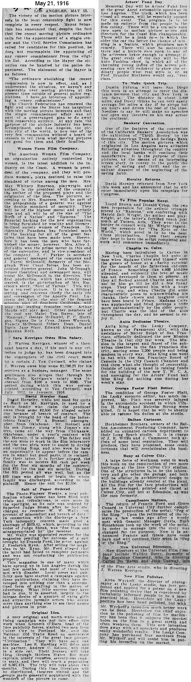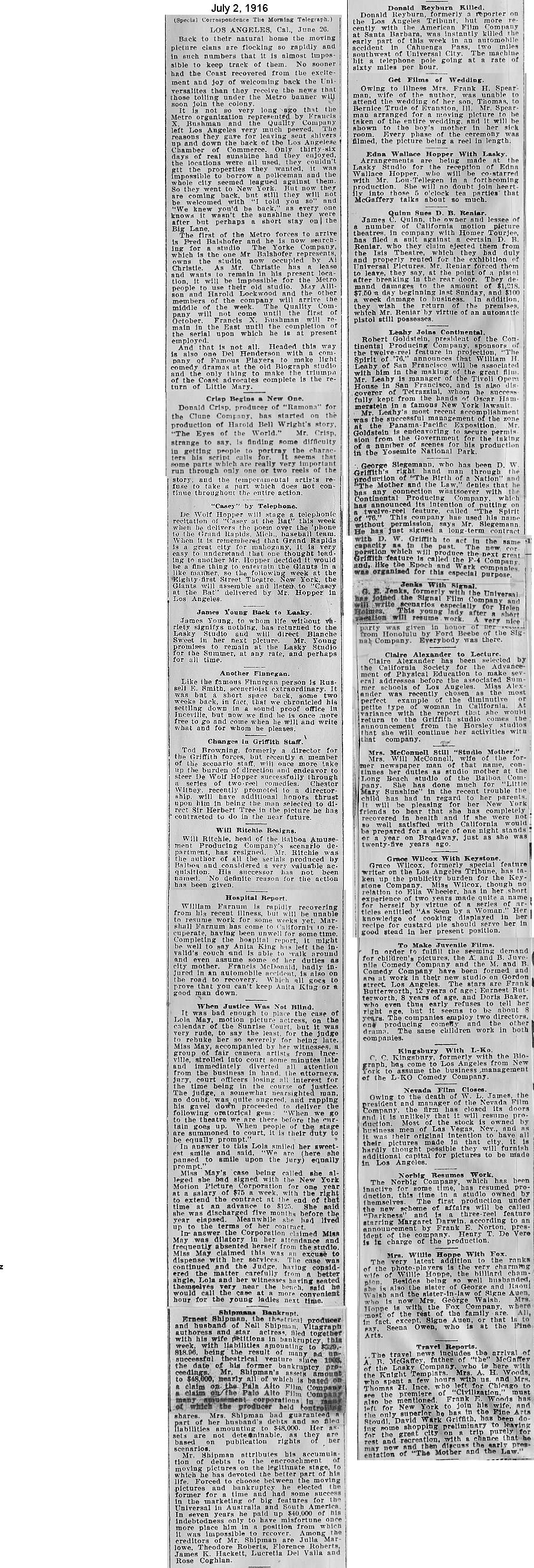 Silent Era Home Page  >  Taylorology  >  Press Archive  >  New York Morning Telegraph 1914-1922  >  1916